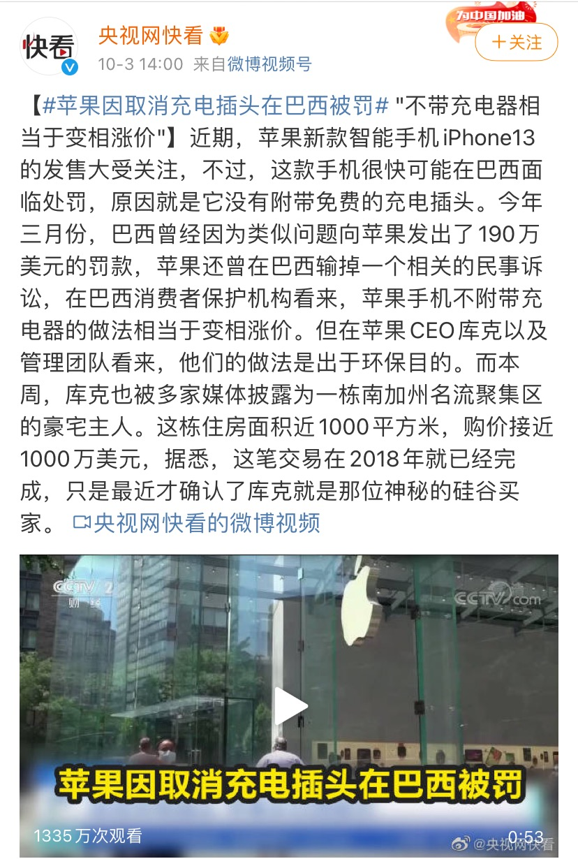 而关于巴西处罚苹果公司一事,之前也被央视公开“点过名”: