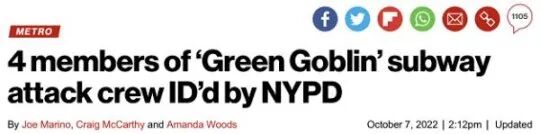根据《纽约时报》的一条报道,当地时间7日,一群穿着看起来像“绿色哥布林”的人在纽约州曼哈顿的地铁上袭击了两名19岁女子。