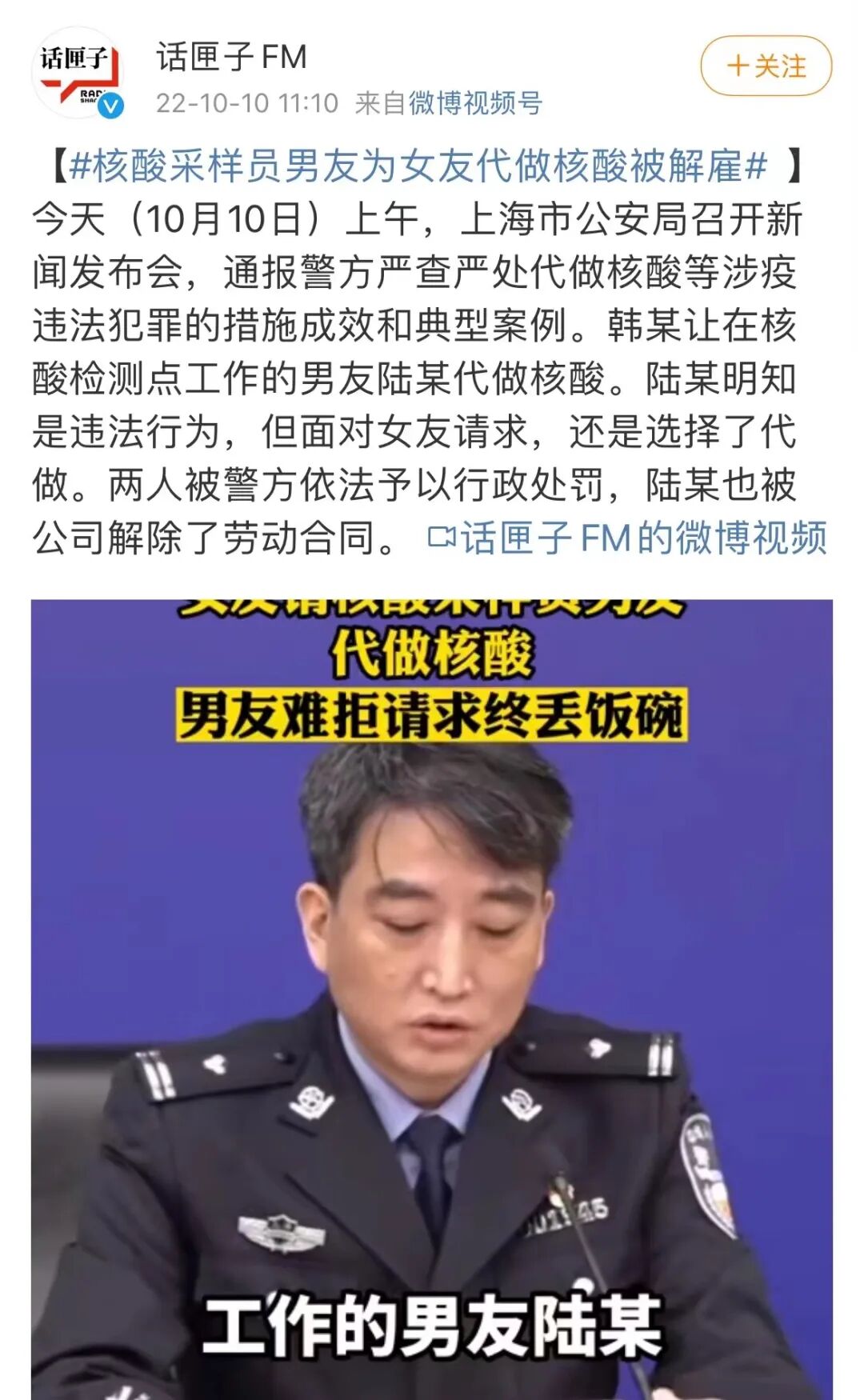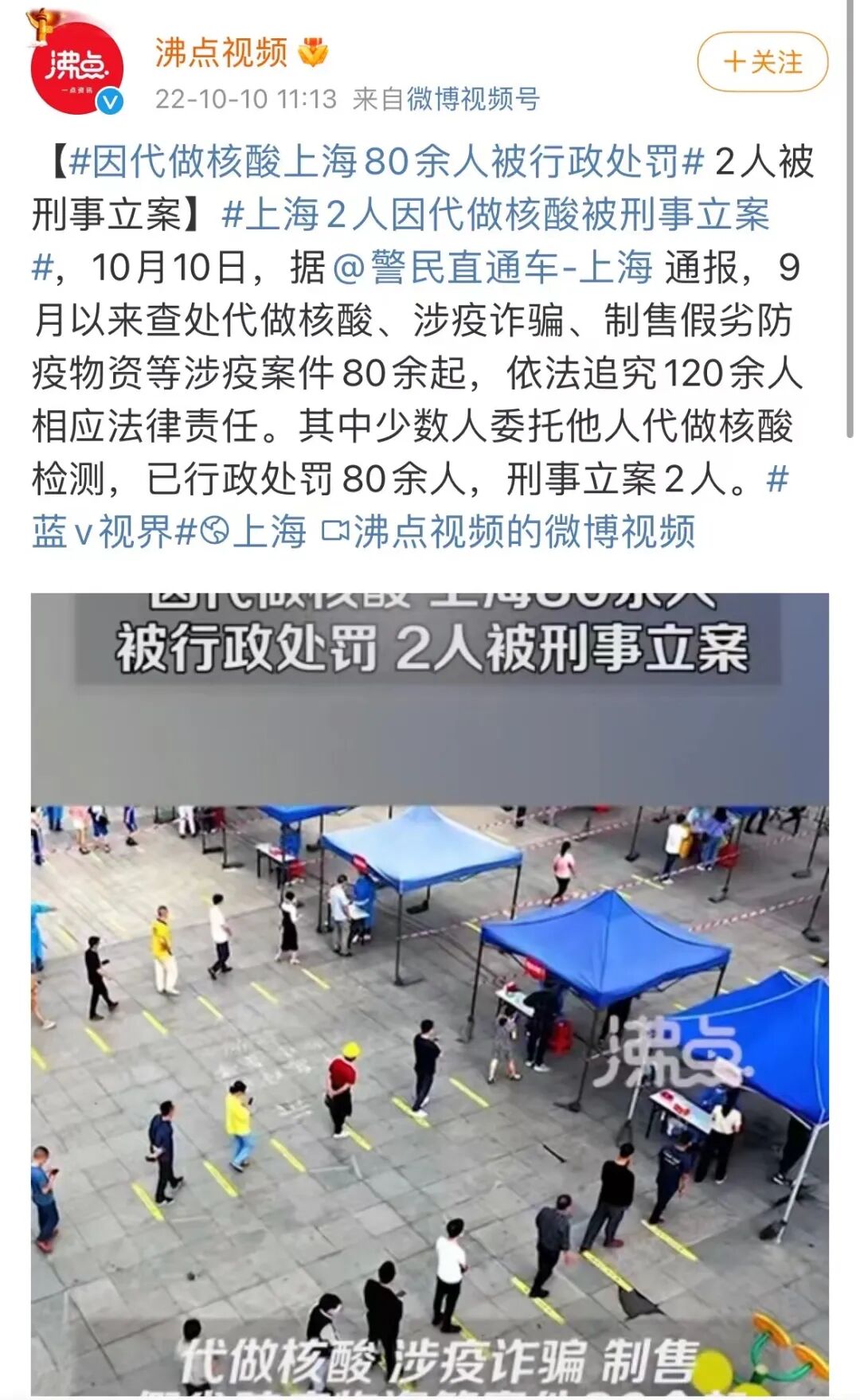 除了利用“上门核酸”营销炒作之外,近期还发生了很多“代做核酸”的离谱案件。
