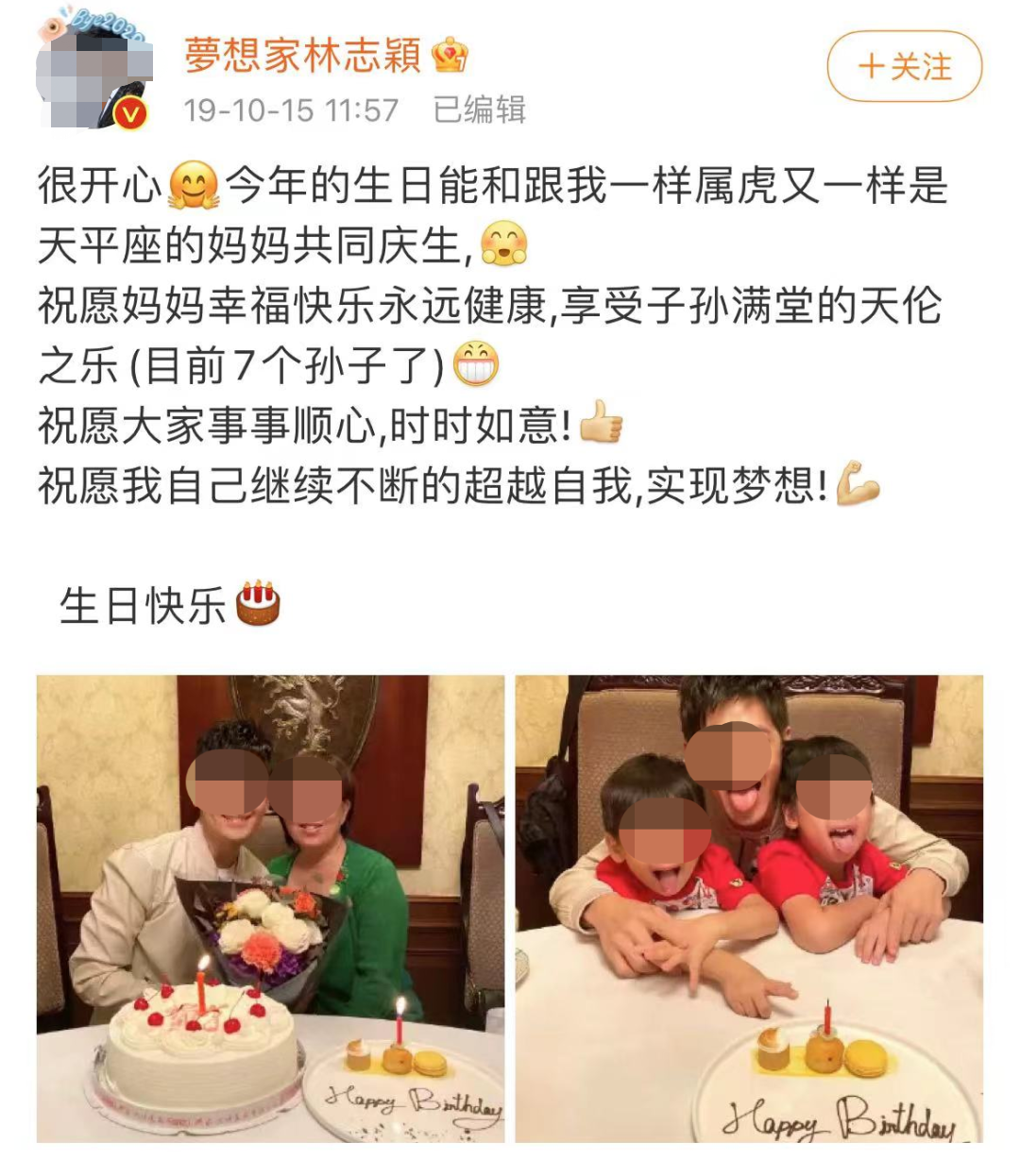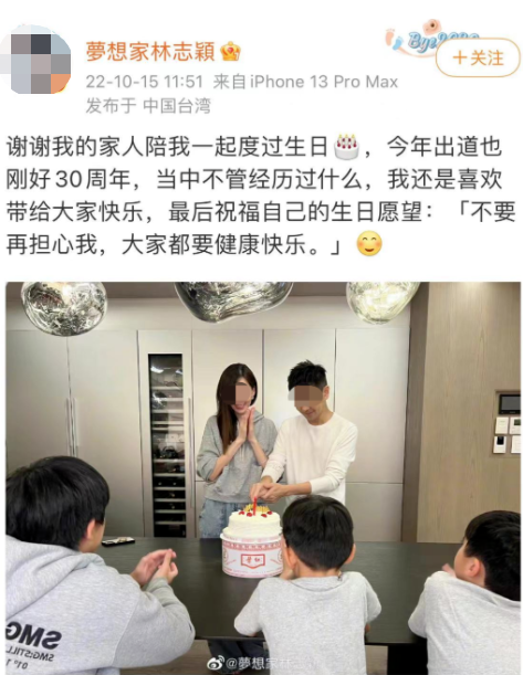 一转眼,事情已经过去快3个月了,10月15日,林志颖首次公开露脸,晒出了跟家人一起过生日的照片,许愿“不要再担心我,大家都要健康快乐”。