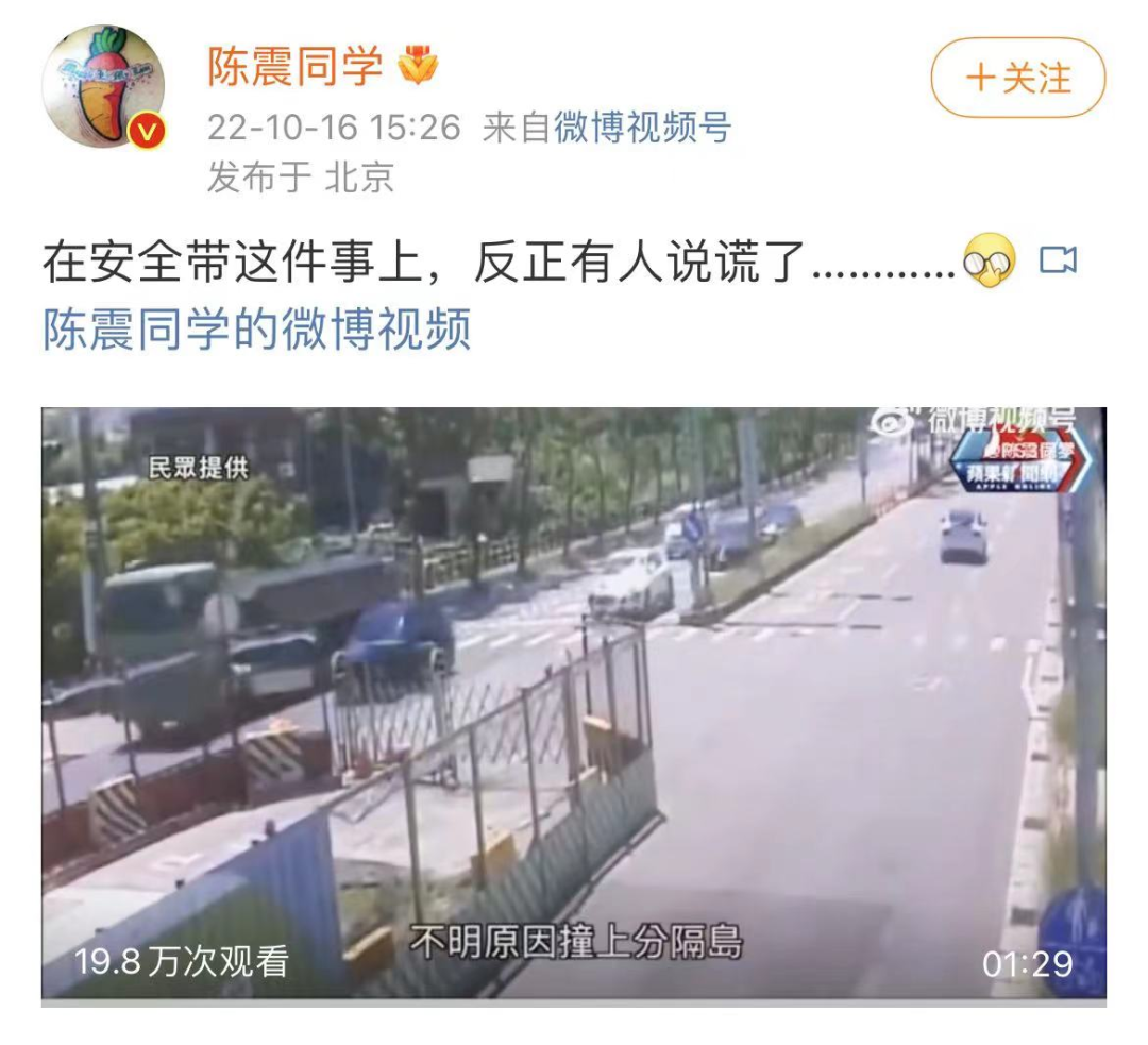 也有车圈大V怀疑其没有系安全带。