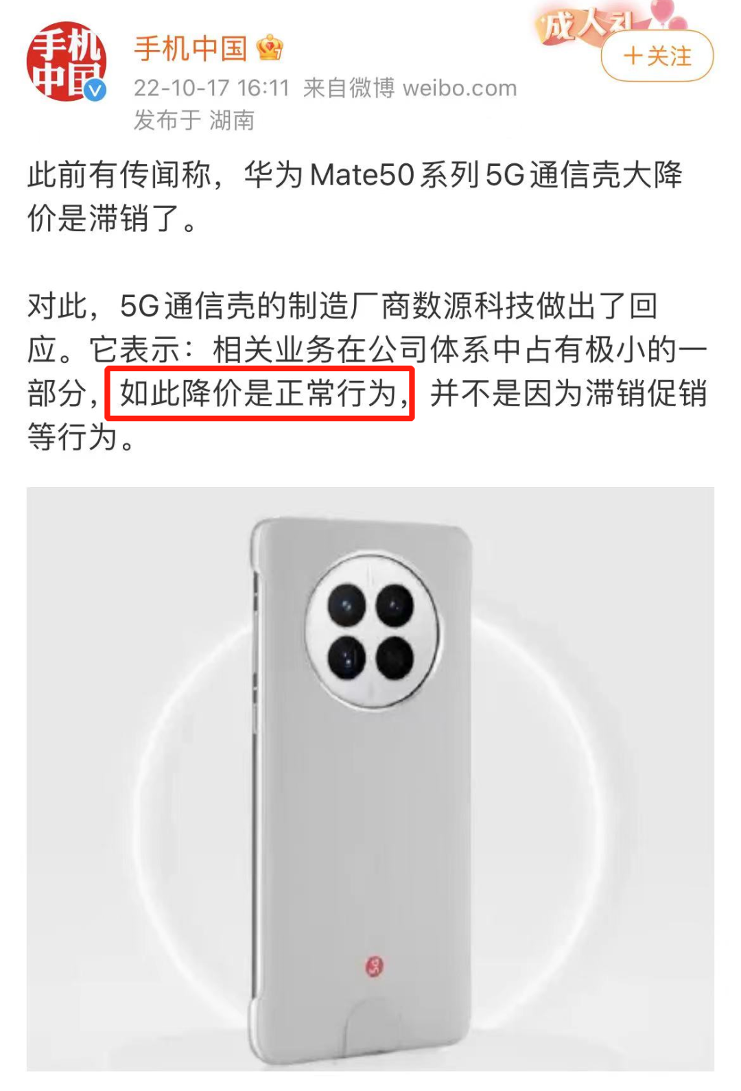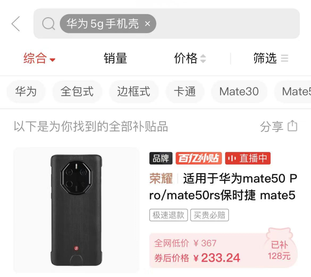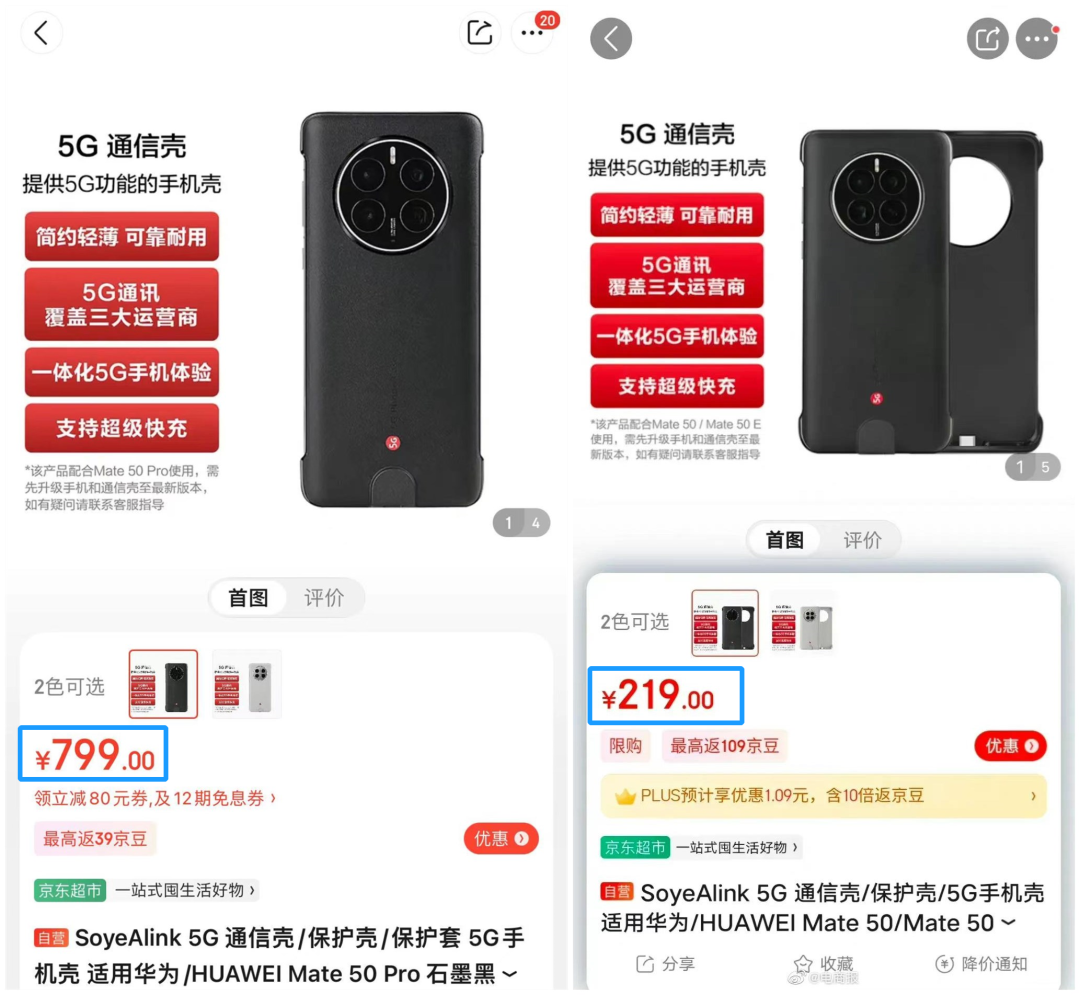 Mate 50发布才一个多月,5G通信壳的价格也从799元跌到了219的活动价。