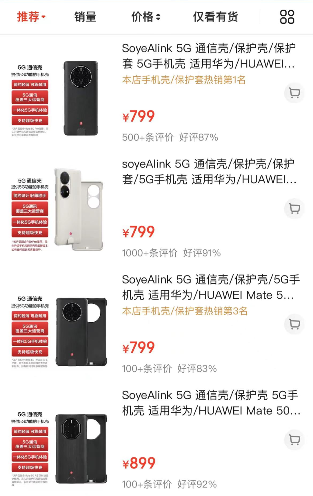 华为旗舰店销售的soyeAlink“5G通信壳”并非华为手机的官方配件,而是由数源科技(Soyealink)研发生产的。