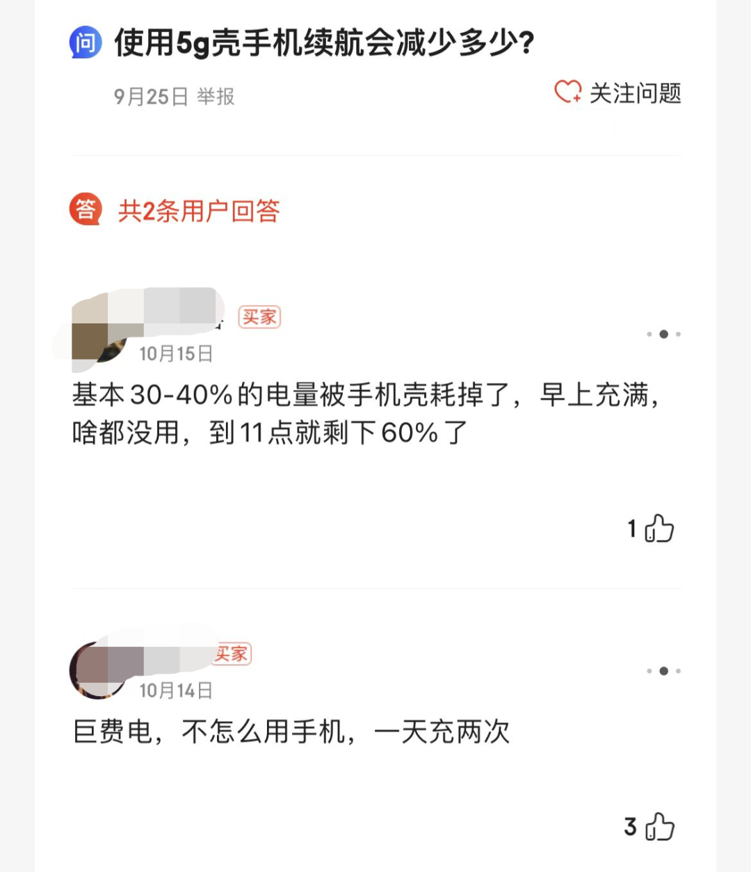 但有一些买过的网友吐槽,称佩戴5G壳后电池消耗太快。