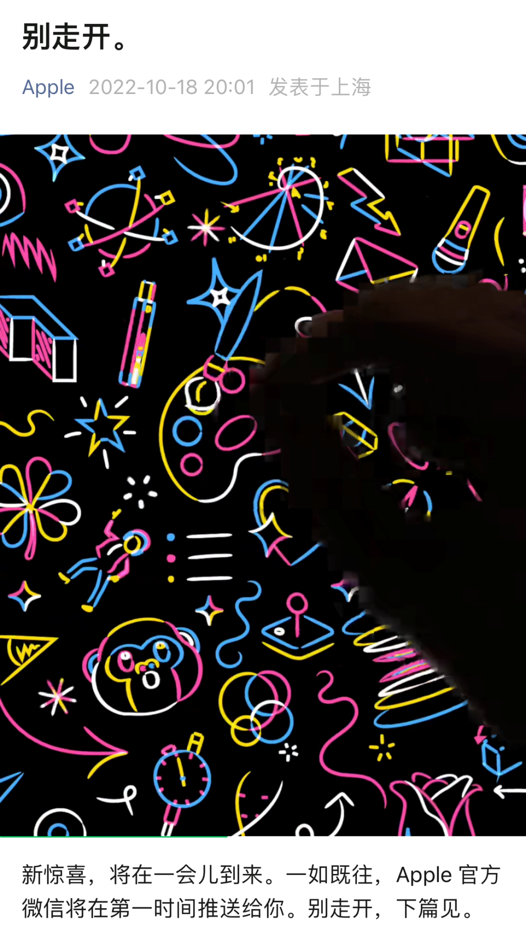 昨晚8点,Apple官方微信公众号先是发了一个“别走开”的预热。