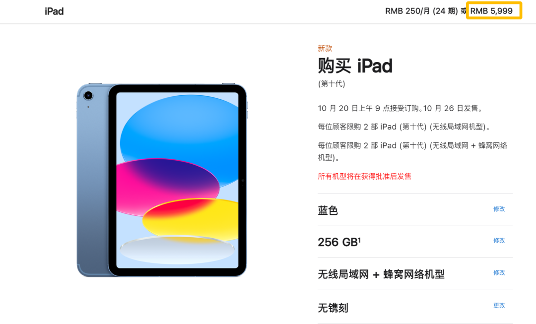 一款256GB+支持蜂窝网络的“顶配版本”,也要将近6000元。