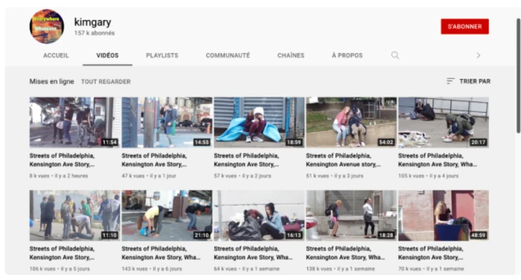 博主叫kimgary,几个月来,他一直都在开车拍摄费城肯辛顿大街的吸毒者们。
