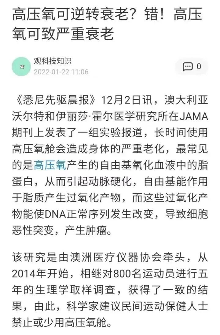 网易新闻:高压氧可逆转衰老?错!高压氧可致严重衰老