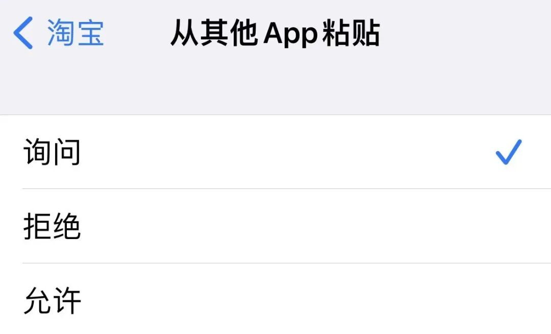 第二步:去设置中找到这个App,点击【从其他App粘贴】,选择【允许】。