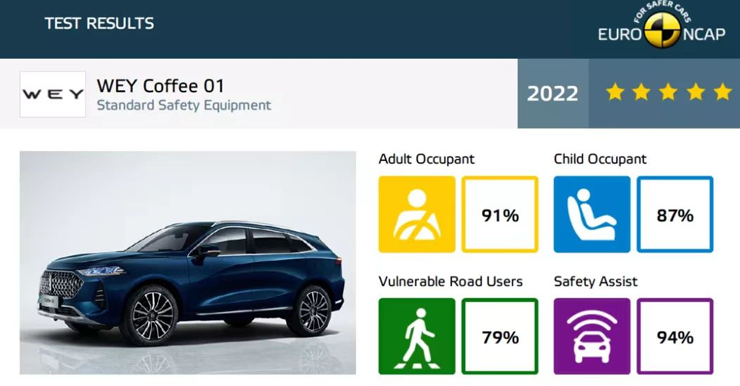 而本次在2022年巴黎车展中,欧洲上市的魏牌摩卡PHEV(Coffee 01)与欧拉好猫,均在严苛的国际测试中获得了Euro NCAP“五星安全”认证。