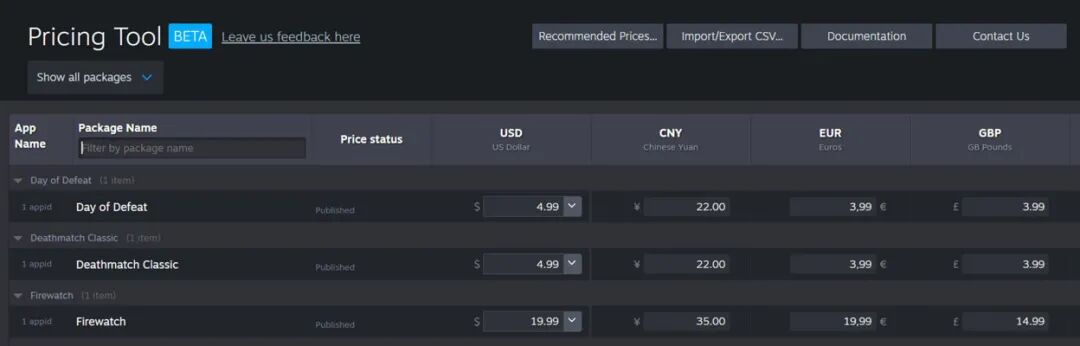 此外,Steam还推出了一款新的定价工具,帮助开发者更好地制定各国家和地区的游戏价格。