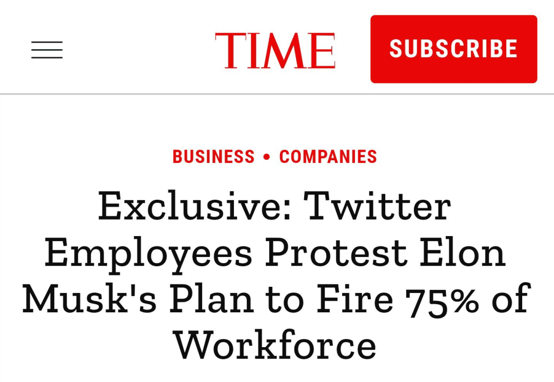 此前,有媒体报道称马斯克计划解雇75%的推特员工,将公司人数精简至2000人左右。