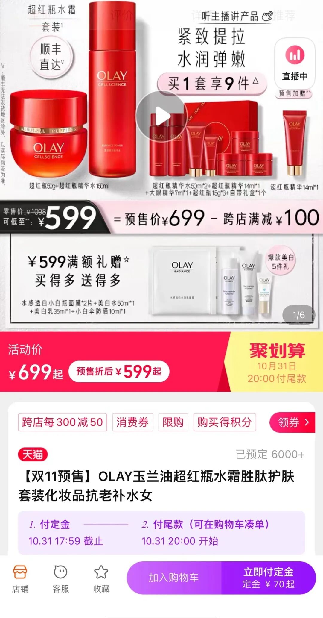 女生自用、男生可以买来送女友/老婆的OLAY玉兰油超红瓶护肤套装,在优惠价格的基础上,再享受3期免息,一期也就200块的支出。