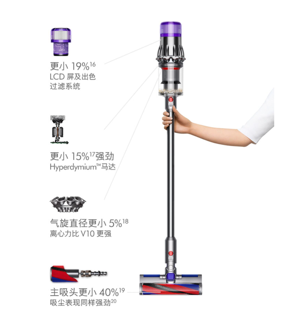 而且,作为V10的轻量版本,V10 Slim的质量更轻、体积更小,使用起来更省力,同时还兼顾了强劲动力。