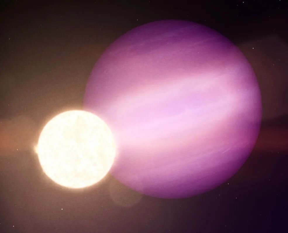 近日天文学家在距离地球大约80光年远的宇宙中,发现了一颗白矮星。这颗编号为WD 1856的白矮星是一颗恒星的遗骸,也是一个“三体”系统的成员。在距离这颗白矮星很近的地方存在着一颗大小和木星相近的行星WD 1856 b。这颗行星的公转周期大约只有34小时。而最让人感觉不可思议的是,WD 1856 b的体积要比它的主星大7倍。