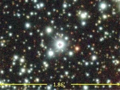 恒星400799224的可见光和红外影像(中心十字处)。画面宽度1.86角分。Powell等