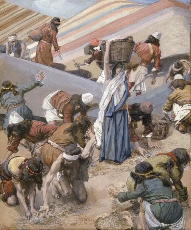 在这个过程中,不可避免的是粮食问题。因为人多,所处的地带是沙漠,植被少,因此他们的粮食很快就所剩无几。但就在这时,上帝介入,给了他们玛纳。
