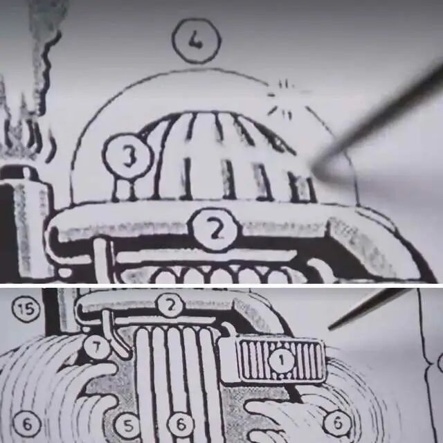 两位电气工程师对这个信息很感兴趣,他们通过对“远古”的描述,设计了他们所谓的人工机器。例如,(1)的位置是“嘴”,但实际上,它是空气的入口,实现所谓的“生命的呼吸”。空气通过的管子被描述为“大脑”,但它实际上是一个冷凝器。根据这些,工程师能够分析每个位置的作用,并重建机器。