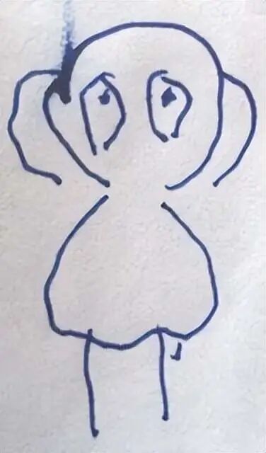 他描述这个娃娃大约1米高,有一个很大的头,上面有明显的鼻子、眼睛和嘴巴,还有小小的胳膊和腿。他特别提到它没有耳朵。