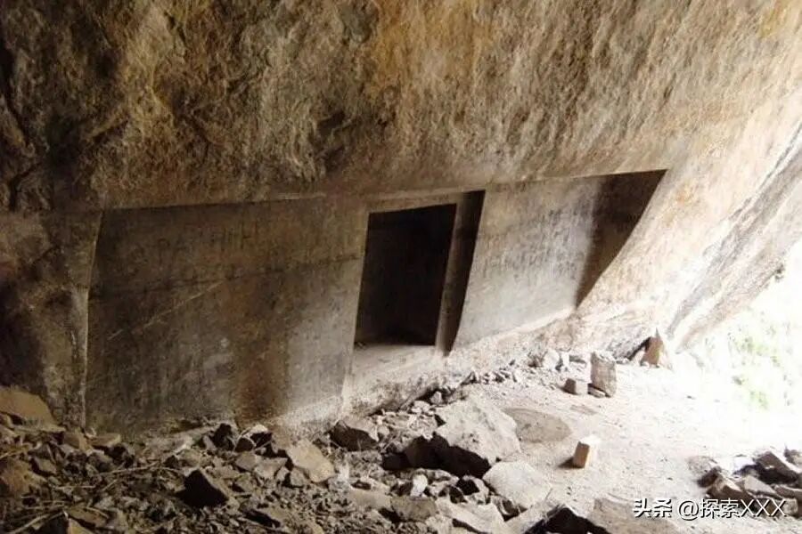 天花板形成的角度并不是这个地方最大的奥秘,一扇传说中的传送门就在下面,一个位于洞穴侧壁的小建筑。就这扇门的物理结构而言,它是假的,这意味着没有实际的物理空间可以作为门。从表面上看,这是一扇“没有门的门”。