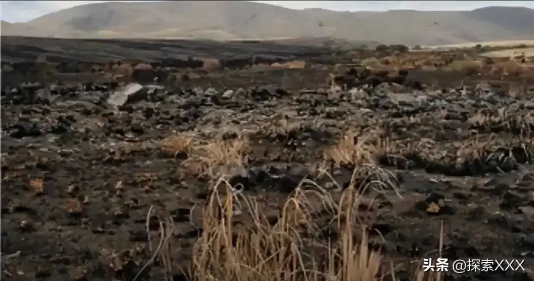 由于某种原因,这些草只有上半部分被烧毁,下半部分完全没有受到影响,这与普通的火灾景象完全不同。