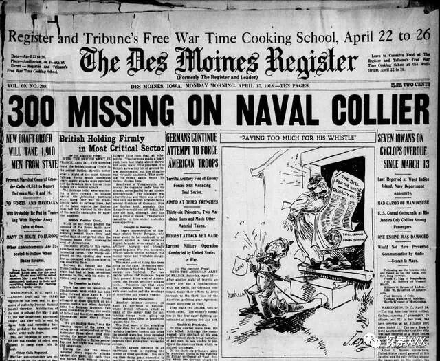 美国海军一直对这场灾难保持沉默,直到1918年4月中旬才发布了一份新闻稿。1918年4月15日,《得梅因纪事报》报道:“4月11日,这艘船失踪近一个月的事实才在这里为人所知。”“海军审查员要求美联社不要公布这一事实,理由是这艘船并不是因为失踪而放弃的,如果公布这艘船失踪的事实,它可能会受到敌人的攻击,而它可能会在公海上报废。”