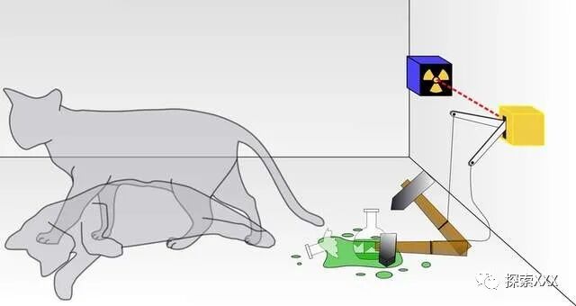 如果把一只猫放在一个盒子里,盒子里装有一个放射性衰变探测器,一旦被激活,它就会破坏一个有毒的瓶子,一个以波的形式存在的衰变粒子将产生两个同时发生的宏观现实——一个是猫活着,另一个是猫死了。虽然,通过观察,人们可以看出猫不是死就是活,但一些量子物理学家,如已故的休·埃弗雷特三世,在1957年首次提出了多重世界的解释。他推测两种现实都存在,只是它们独立存在在两个平行宇宙之中。