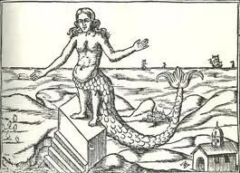 今天早上,我们的一个同伴从船坞上看,看见一个美人鱼......从船上往下看,她的背部和胸部像一个女人,她的身体和我们一样大;她的皮肤非常白;后面垂着一头黑色的长发;在她倒下的时候,他们看到了她的尾巴。