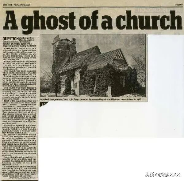 当然,这些古老的口口相传的故事似乎没有什么说服力。让我们来看一个近代的例子。这件闹鬼事件发生在英国,并登上过报纸。