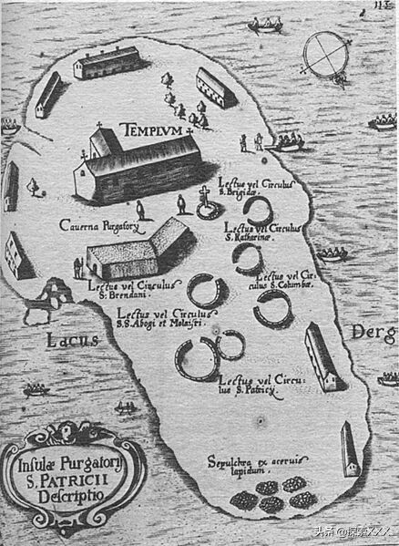 这个被称为圣帕特里克炼狱的地方出现在许多早期的地图上,并成为了一个朝圣中心。那里有一座修道院,可以做祈祷和参加弥撒。而那个炼狱的入口,朝圣者则将它描述为一个只有半米宽一米高的狭窄入口,用一扇门封闭着。进入后有一小段楼梯和两个地下小房间。第一个房间只有不到3米长,矮得站不起来,第二个房间只有一米半长。