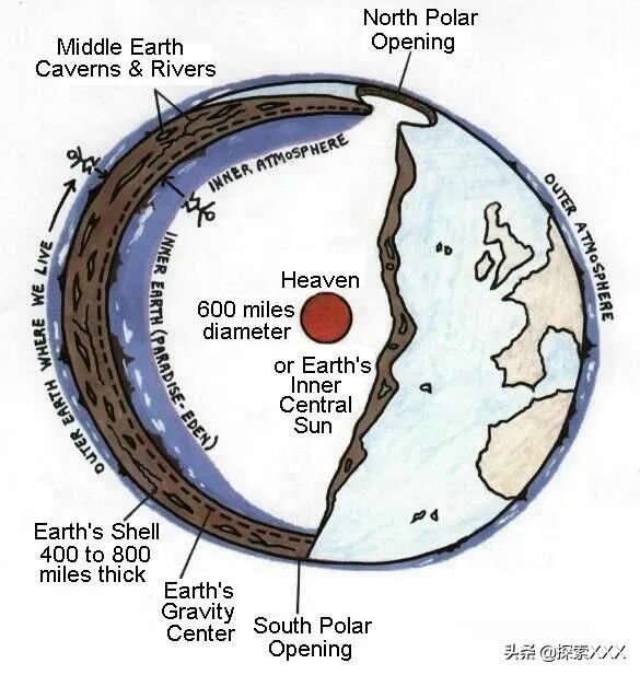 “通过把地球看成空心的,我们就能解决所有伟大的谜团......超自然的东西让位于自然......心灵和身体都得到了解脱。”