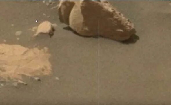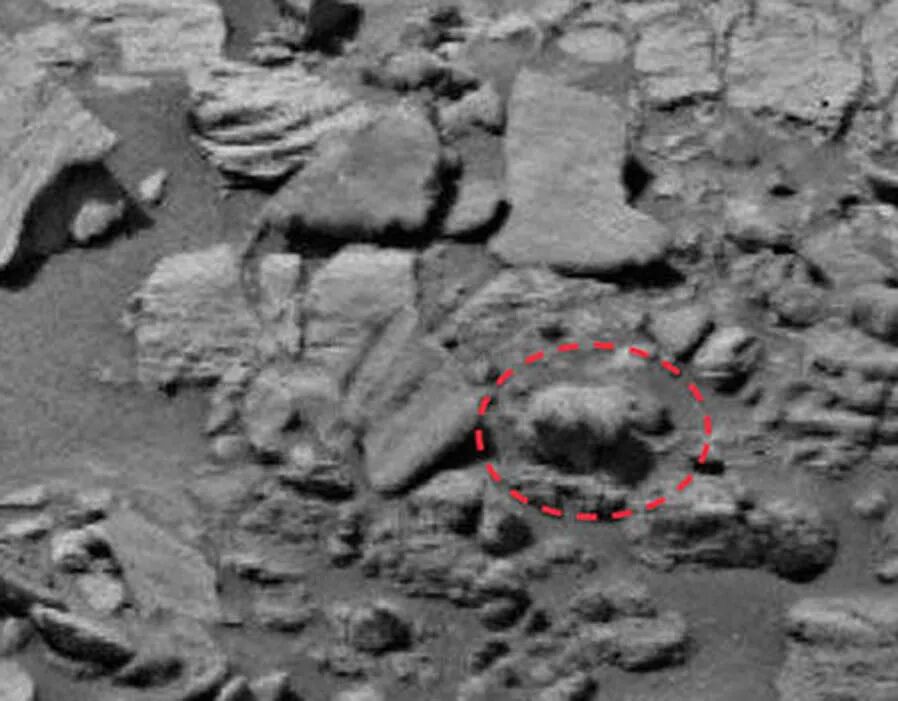 这张照片所描述的是一块布满石块的区域,火星车在这里收集了用于分析的岩石样本。然而,UFO猎人和阴谋论者斯科特·C·韦林却在这张照片中有了新发现。