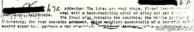 文件还对其飞行器进行了说明。根据其描述显示,这些飞船呈椭圆形,由未知的耐热金属或合金制造。其前部装有控制装置,中间是实验室;后部装有武器,主要由强大的能量装置(也许是射线)组成。