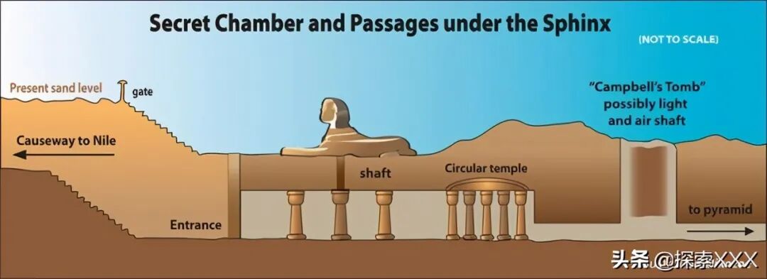根据照片显示,狮身人面像下面极有可能有竖井和台阶通往一个未被探索的洞穴。有报道称,埃及政府以“国家安全”为由,叫停了大量的挖掘工作。比如2008年由比利时和埃及研究人员组成的小组发现的神秘迷宫。这个地下寺庙由3000多个房间组成,里面满是象形文字和令人难以置信的绘画。这个神秘的地下建筑群位于距开罗不到100公里的哈瓦拉,靠近黑色金字塔。