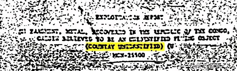 首先,我们可以看到,这份报告实际上是关于某种物理材料的。文件表明一个不明物体“落到”刚果民主共和国(当时的扎伊尔)的Kerekere地区,尺寸大约2 " x 2 " x 1 "。