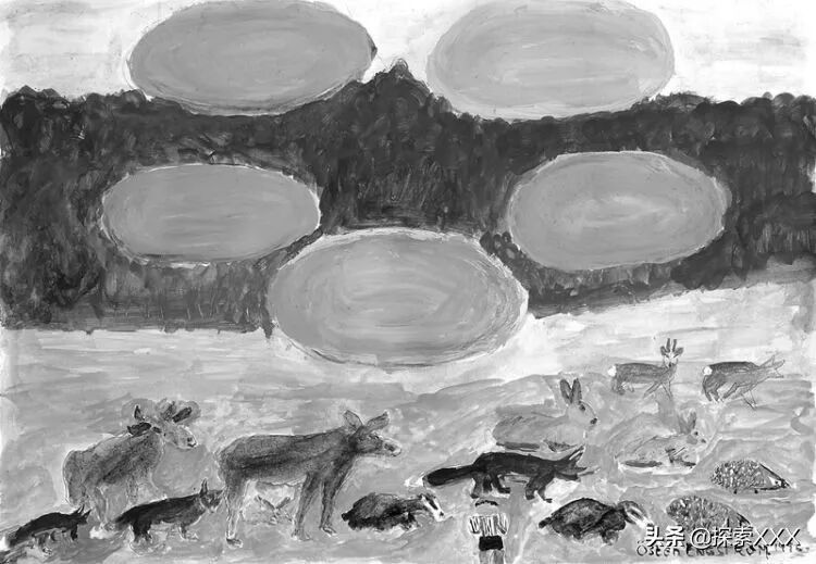 突然,不同的动物开始从森林里跑出来:鹿、野兔、驼鹿、松鼠、獾和其他动物。这些动物在疯狂地朝泥炭沼泽跑去,好像有人在追逐他们。而就在这时,天空突然变暗了,然后上方出现了一道奇怪的光。奥斯丁回忆当时的情形时说:
