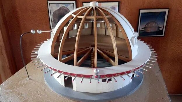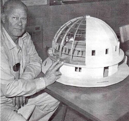 从1953年开始,塔塞尔开始构思、计划和建造整合机。这是一个圆形建筑,位于巨岩以南约3英里处。整个建筑的圆顶木结构由十六个面组成,高38英尺,直径55英尺。建造过程中没有使用任何钉子或金属紧固件。整个建筑是用胶水、层压的老道格拉斯杉木梁和胶合板建造的。它的外部被漆成明亮的白色,从远处看,给人一种飞碟刚刚着陆的感觉。