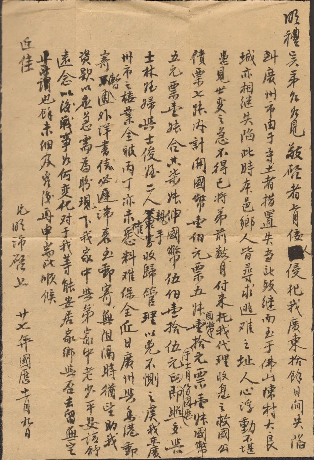 △江门市博物馆馆藏银信,华侨陈明礼购买了五百一十五元的救国公债。