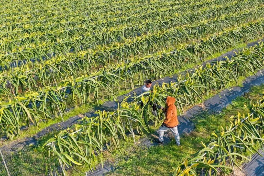 阳山县阳城镇畔水村的村民在修剪火龙果树苗。(图源:清远日报)