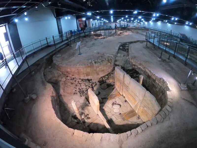 南越国宫署遗址内的月弯形水池与水闸遗址。图/广州日报·新花城记者:王维宣