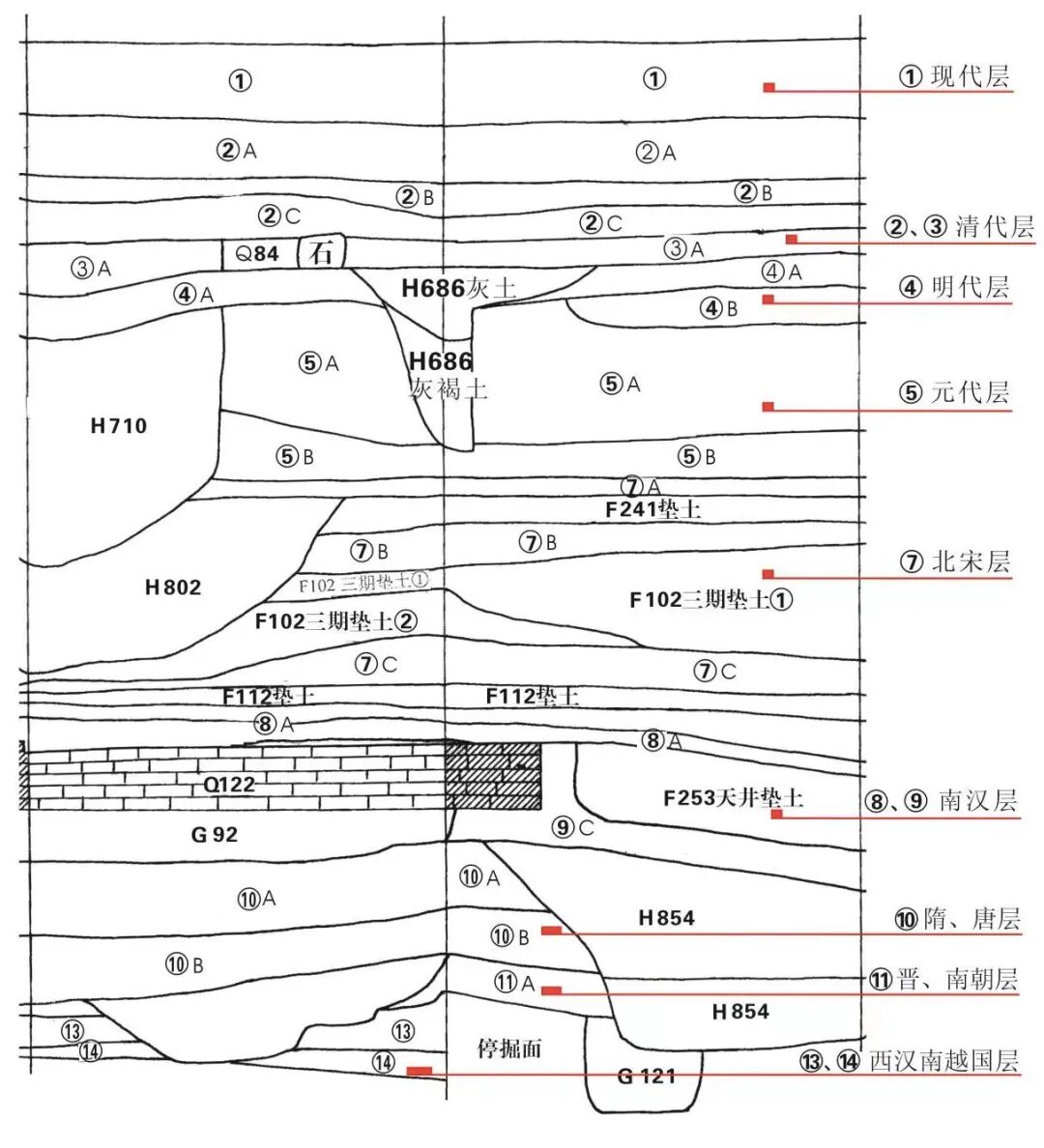 南越国宫署遗址考古地层关键柱剖面图(图/广州日报·新花城记者卜松竹)