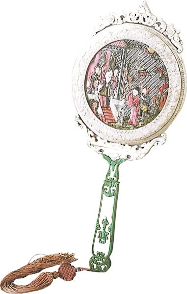 这是清代牙雕人物彩绘带柄圆镜。(广州十三行博物馆供图)