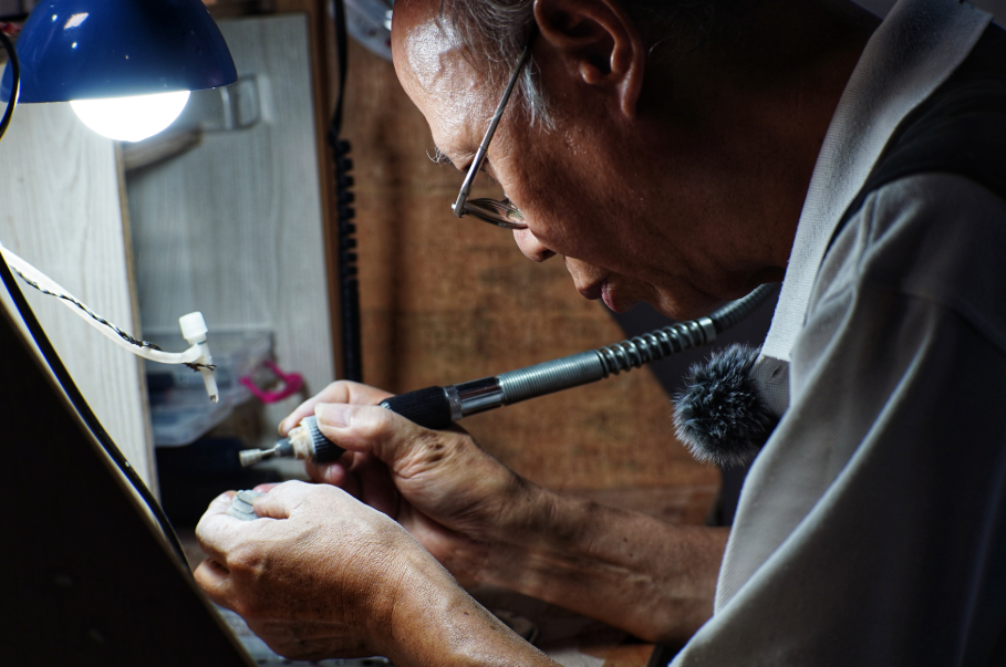 作为广州玉雕的非遗传承人,尹志强比退休前更忙了,既当师傅收徒传艺,又当老师普及玉雕文化。