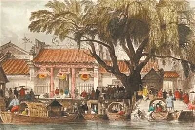水畔人家,凭栏沐风,这是外销画里的古广州。