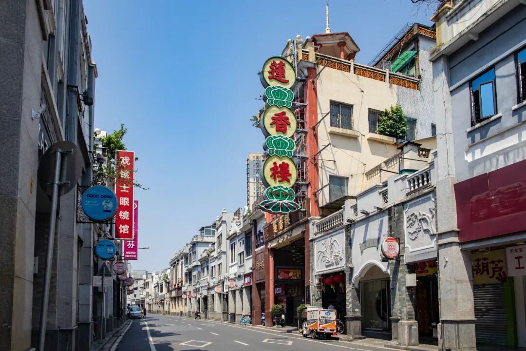 大致建成了以今人民路和中山路为坐标轴,北至东风路,西至龙津路,南至同福路,东至东华路的骑楼街,当时总长40多公里,风格各异、兼容并包。