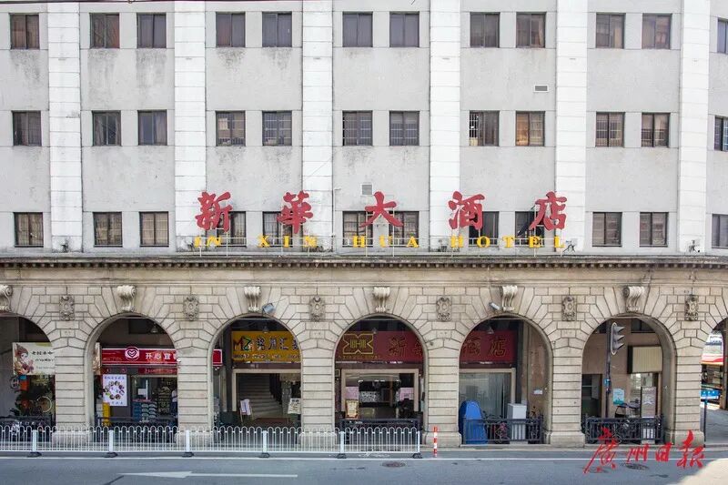 旁边是有“南华第一楼”之称的新亚大酒店,外墙立面长长的拱形窗与垂直线条,充满哥特式装饰意味;底层高五余米、宽约四米的行人通道,完全突破了当时普通骑楼尺度的标准,堪称豪华骑楼空间。