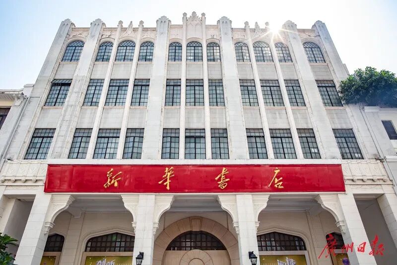 比如北京路步行街最北端,建成于1931年的“新华书店·岭南书店”两个立面风格迥异,面向今北京路一侧的正立面,上下层窗间墙的位置及建筑顶部是明显的西式“折”形风格;北立面则是典型的中式设计,如带阳台的墙身及中式的大屋顶。