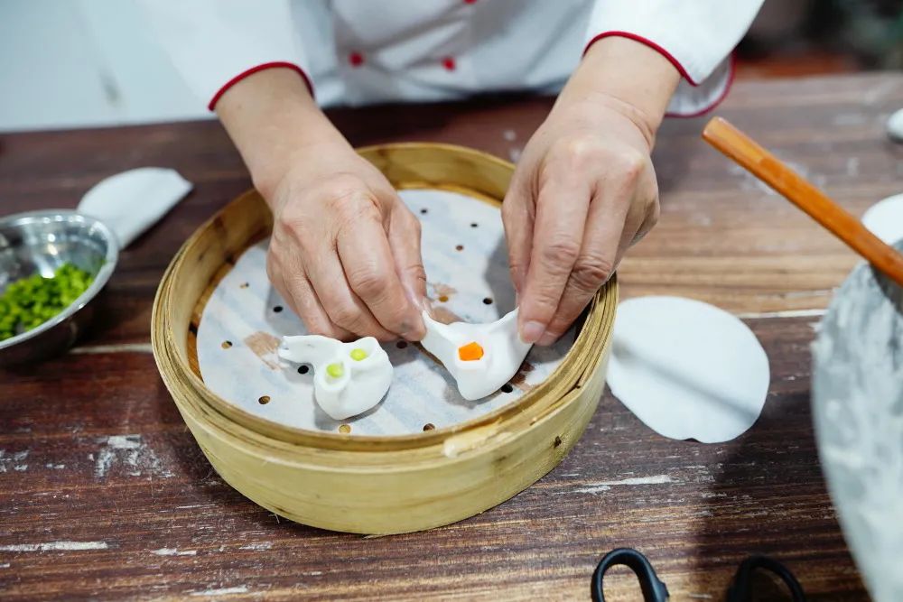 任工业化如何发达,不管多少款点心可付诸工业生产,唯独虾饺是不行的。玄妙就在于饺身的褶皱上。若是能达到13道褶纹,堪称精湛。