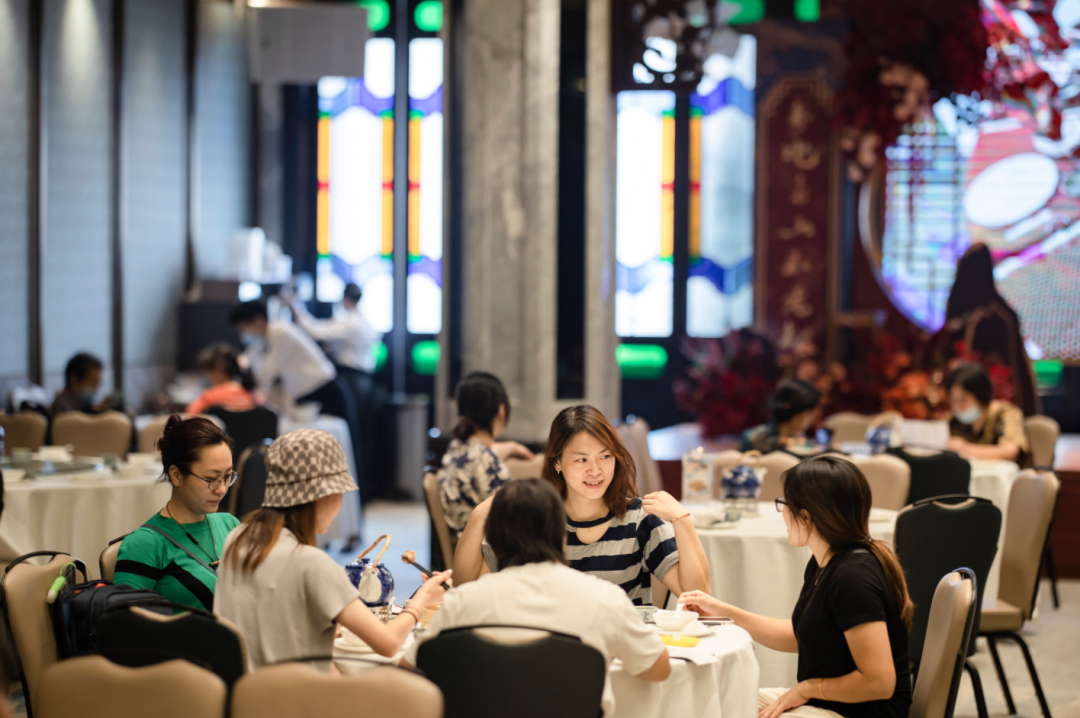 工作日的中午,尽管只有两小时休息时间,白领麦女士依旧约上同在附近工作的友人,到广州酒家珠江新城盈通店“叹茶”。