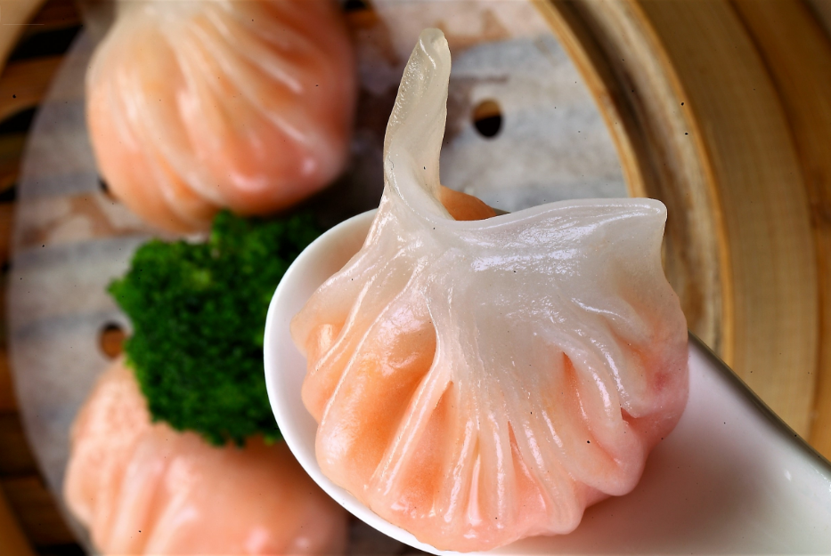 寥寥数句,道出虾饺特点:虾饺皮如同蝉衣般轻而薄,嫣红的虾肉透过衣裳若隐若现,一口咬开来,汁液流淌,鲜香满腔。